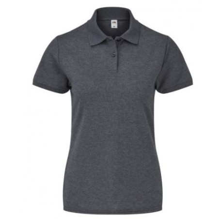 Polo de mujer de 180 g/m² con el cuello de tricotosa y una tapeta frontal de dos botones.