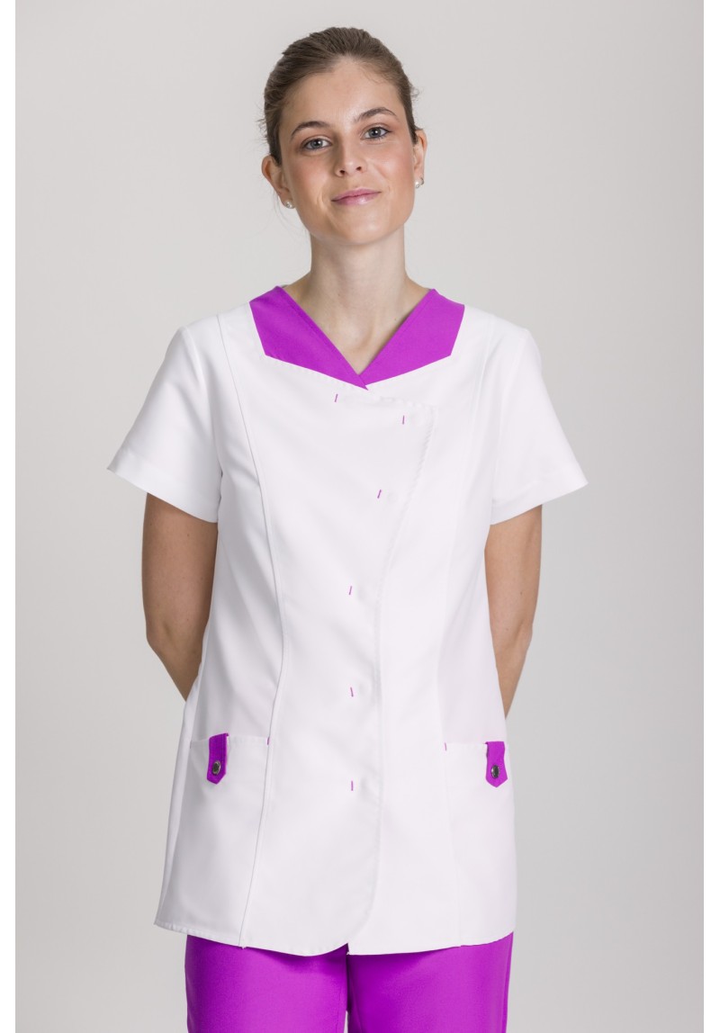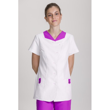 1172 - CASACA MUJER MANGA CORTA CRUZADA BICOLOR MICROFIBRA ANTIBACTERIANA