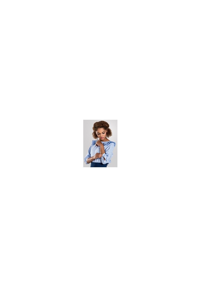 Blusa mujer manga 3/4 y cuello volante. Estampado reversible