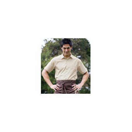 Camisa hombre manga corta con cuello camisero y bolsillo. Espalda con canesú y aberturas laterales en el bajo