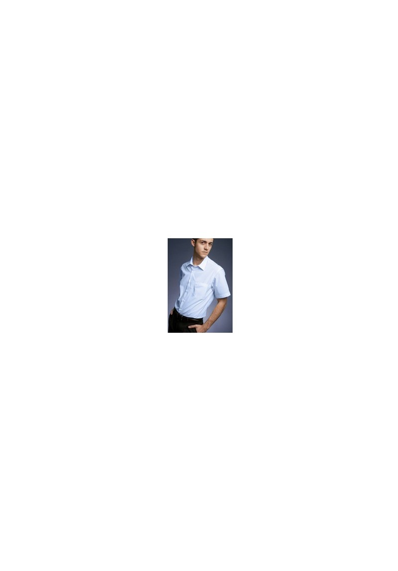 Camisa relaxed fit de cuello inglés, manga corta acabada en puño con botones. Bolsillo de parche en el pecho. Cierre frontal con botones. Tejido de aspecto jaspeado con alto porcentaje de algodón que regula la temperatura corporal.