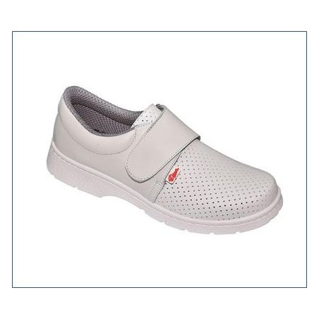 Zapato con cierre de velcro, lavable en frío y caliente hasta 40º, pala de microfibra D'COVER OEKO-TEX® altamente transpirable con gran capacidad de absorción de humedad y rápido secado, acolchado y forrado interiormente D'DRY® en la zona del tobillo. Horma recta de puntera redondeada. Contrafuerte de dureza suficiente para sujetar el calcáneo. Plantilla de tejido sobre espuma de poliuretano con tratamiento antibacterias y carbón activado. Suela de goma-nitrilo, antideslizante de gran coeficiente en seco y húmedo,