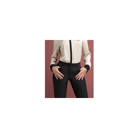 Pantalón mujer con cinco pasadores en cintura y dos bolsillos.