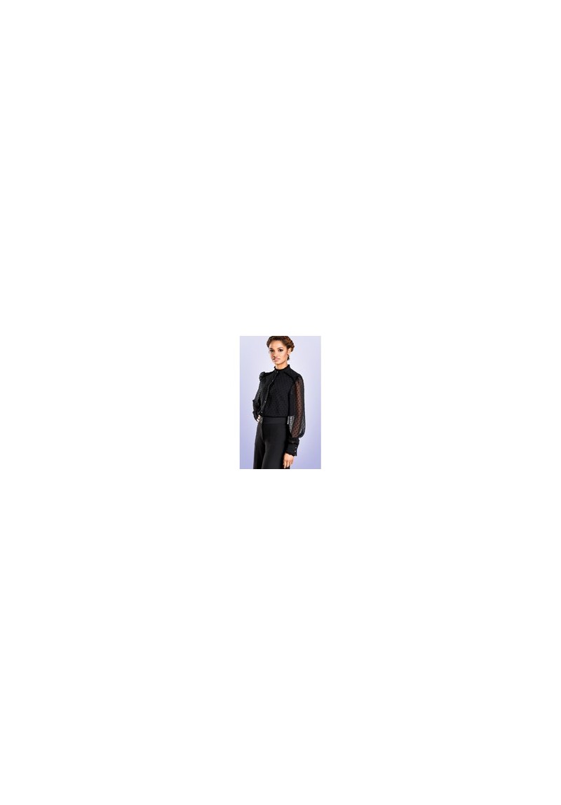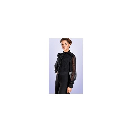 Blusa manga larga y cuello victoriano. Tejido simil plumeti