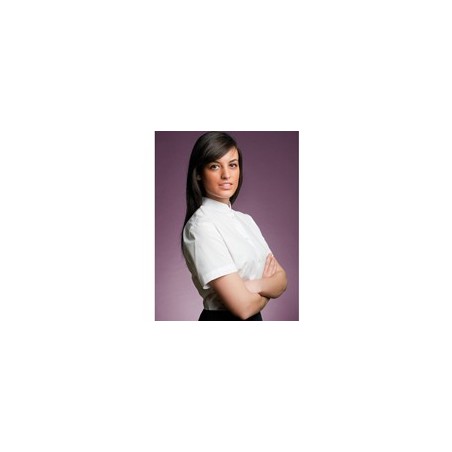 Camisa mujer manga corta con cuello mao y pinzas en delantero y espalda para entallar